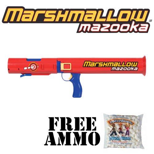 Includes a free bag of marshmallow ammo.Dishwasher safe.Shoots Large marshmallows 40 ft.Outdoor - indoor play.Year around fun for all seasons, for all ages..nerf laser tag guns Mazooka - Marshmallow Shooter w/ Free Bag of Ammo Features.